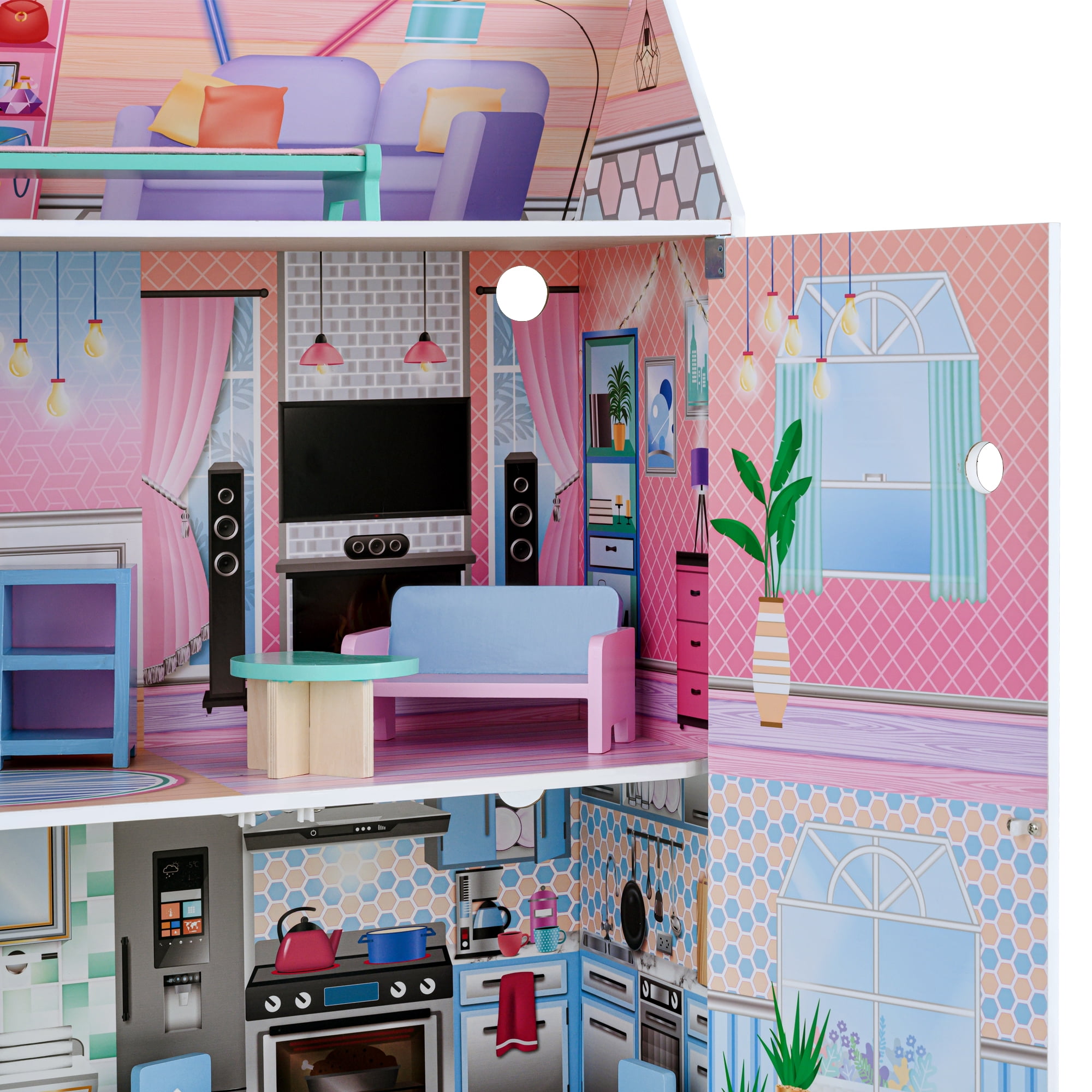 Top Bright Country Estate Wooden Dollhouse With Elevator Dream Doll House For Little Girls 5 Year Olds Walmart Com